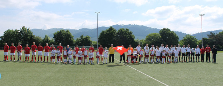 Am Samstag hörte kurz vor Spielbeginn der Dauerregen auf, sodass die beiden Teams bei optimalen Bedingungen spielen konnten. Am Sonntag wurde bei Sonnenschein dann die zweite Begegnung ausgetragen. Bereits im ersten Aufeinandertreffen am Samstag zeigte sich die durchschnittlich jüngere Mannschaft aus der Schweiz als das stärkere Team. Nach einem 0:1 - Rückstand zur Pause gelang es zwar der deutschen Mannschaft die Chancenüberzahl zu erspielen, doch Zählbares kam dabei nicht heraus, sodass die erste Begegnung mit 1:0 an die Eidgenossen ging.